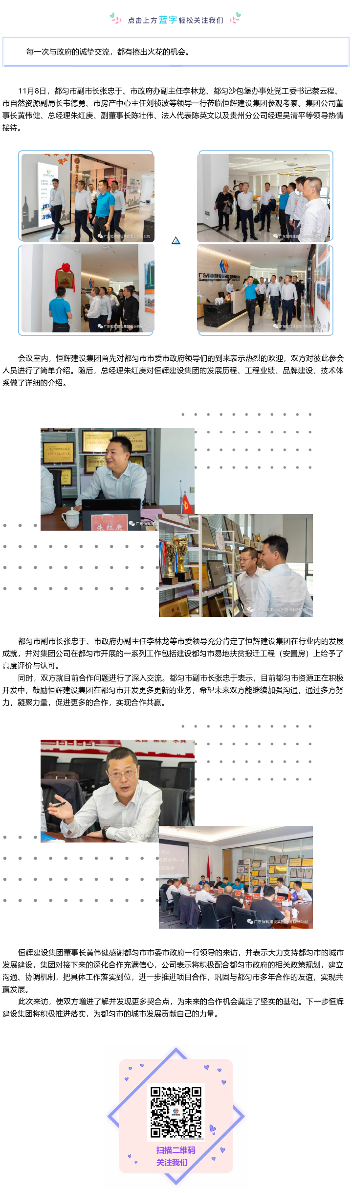 都勻市市委市政府蒞臨恒輝建設(shè)集團(tuán)參觀指導(dǎo)