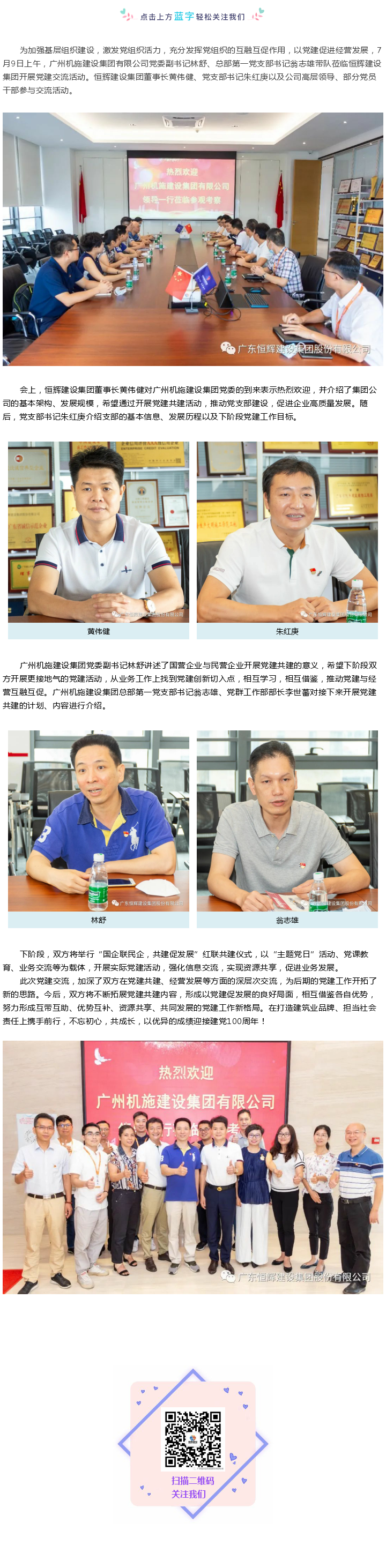 【黨建交流,共促發(fā)展】廣州機(jī)施建設(shè)集團(tuán)蒞臨恒輝建設(shè)集團(tuán)開展黨建交流